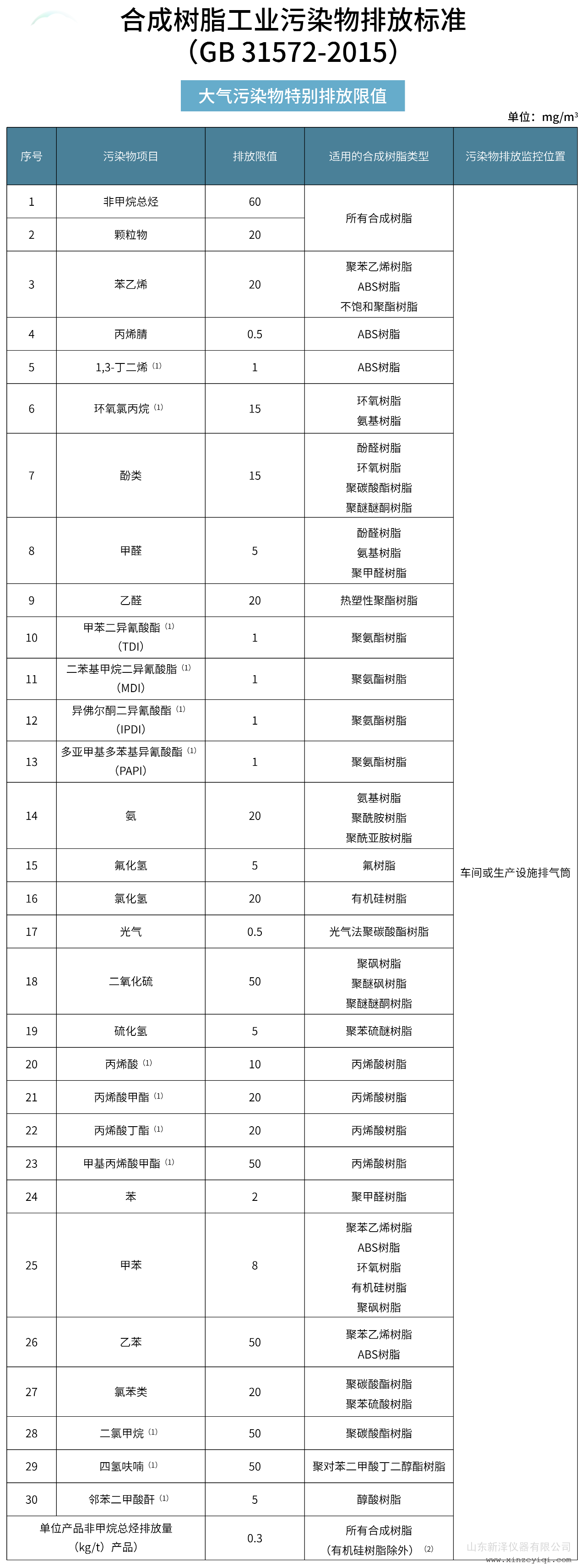 合成树脂工业大气污染物排放标准